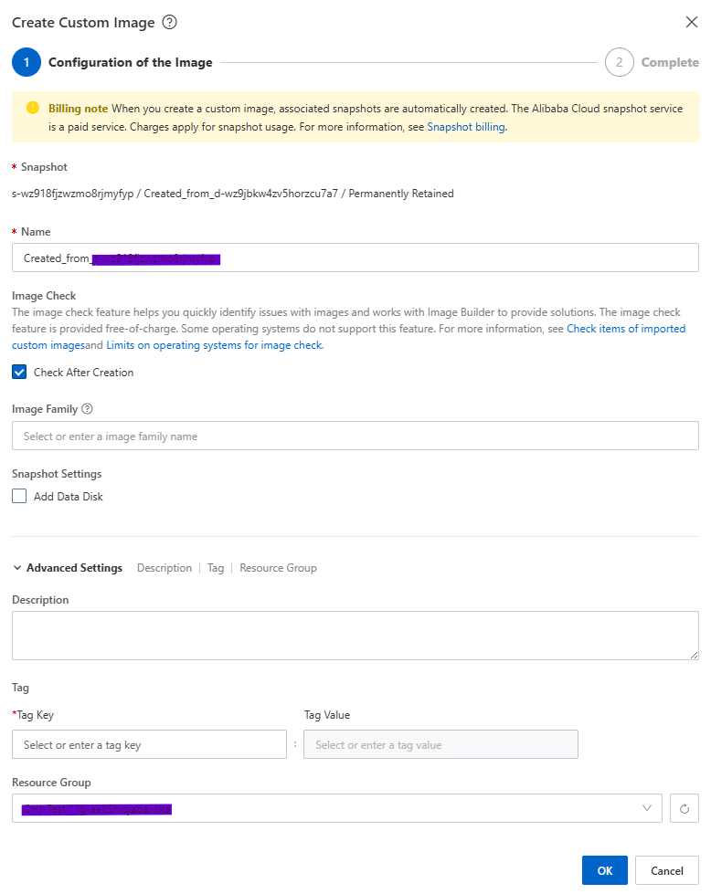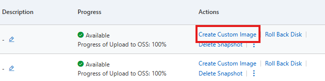 - ECS > Storage & Snapshots > Snapshots 페이지로 들어간 후, 생성한 스냅샷으로 custom Image를 생성합니다.