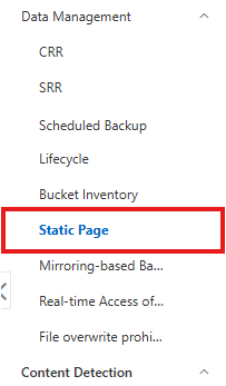- 생성한 버킷에서 Data Management > Static Page를 클릭합니다.