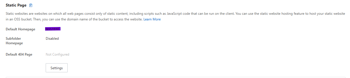 OSS의 Static Website Hosting 기능을 사용하여 정적 웹사이트를 호스팅할 수 있습니다.