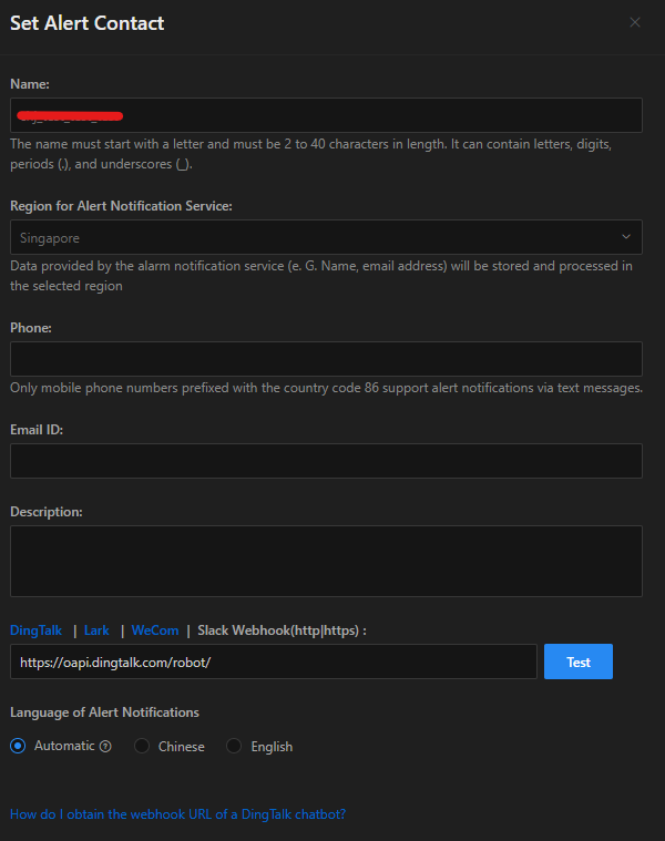 - Create Alert Contact로 이메일/웹훅 등 수신자를 생성합니다.