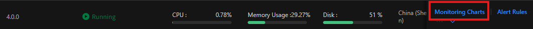 - 리소스 목록에서 Actions 컬럼의 Monitoring Charts 클릭합니다.
