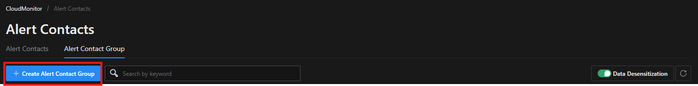 - Alert Contact Group 탭에서 Alert Contact Group을 생성합니다.