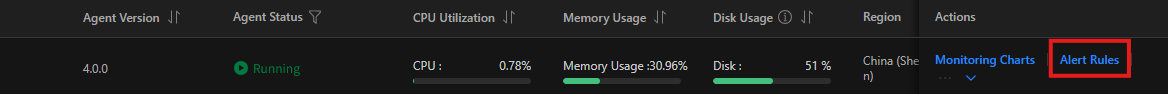 - Alert를 원하는 리소스의 Actions 열에서 Alert Rules를 클릭합니다.