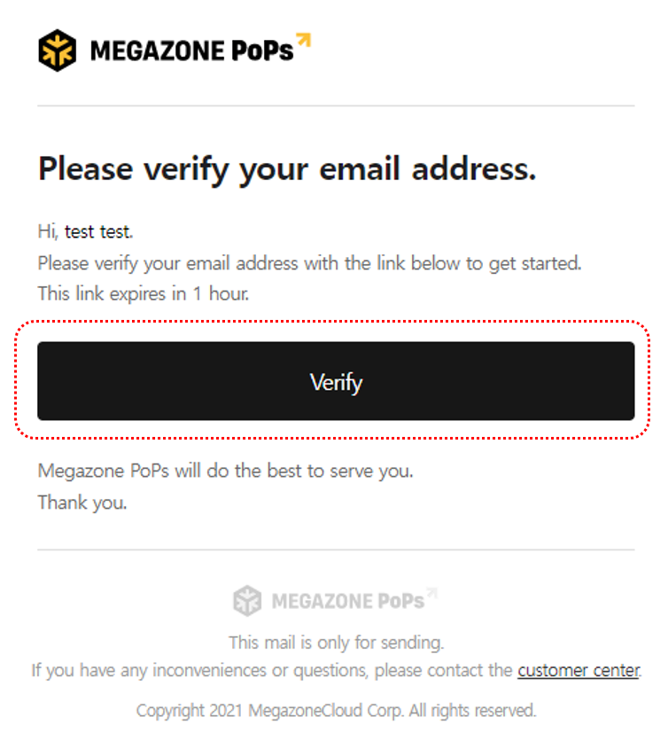 메일을 열어 Verify 버튼을 클릭해 주세요.