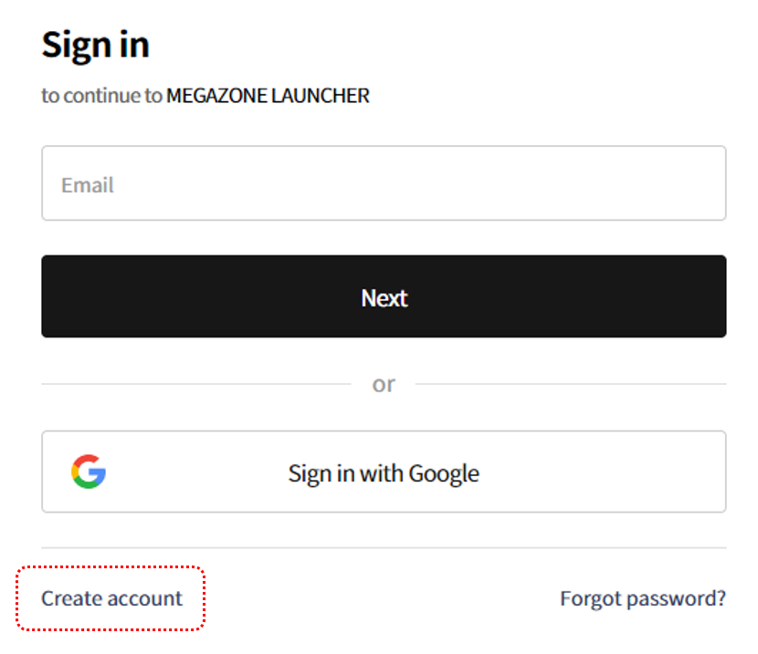Create account 버튼을 클릭하거나, Sign in with Google 버튼을 통해 가입을 진행할 수 있습니다.