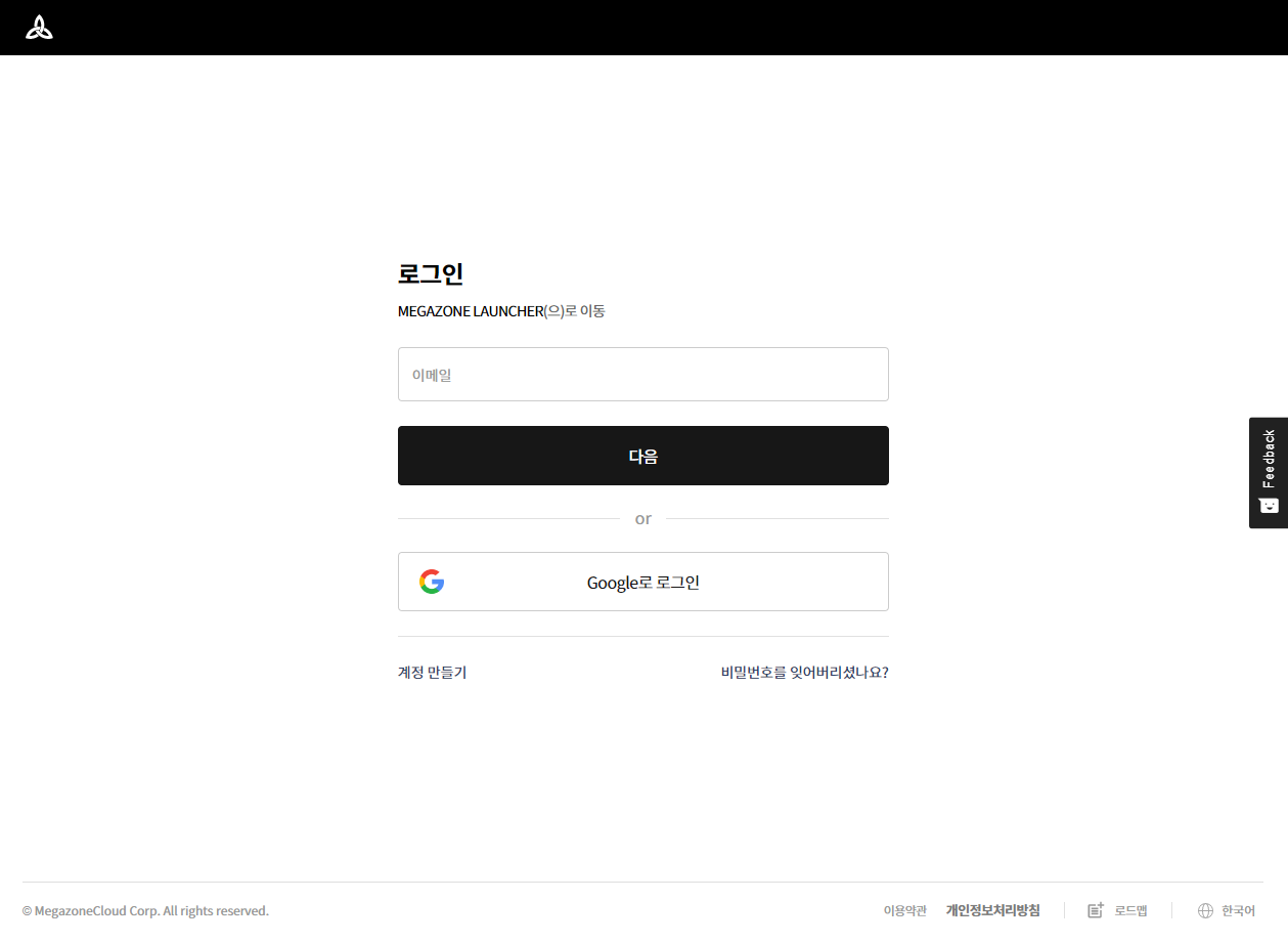 3. 로그인 후, Megazone Launcher 페이지로 자동 이동 됩니다.