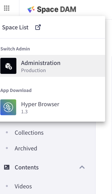 2. 좌측 상단의 앱 그리드(App Grid) 메뉴에서 Administration을 클릭하여 관리자 페이지로 이동합니다.