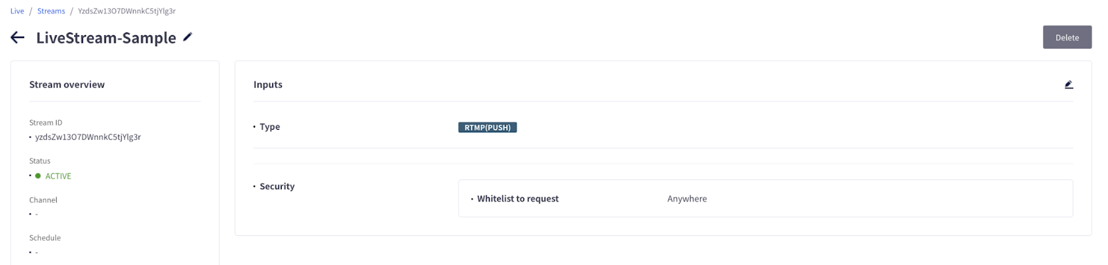 3. Live Channel 및 Stream 삭제