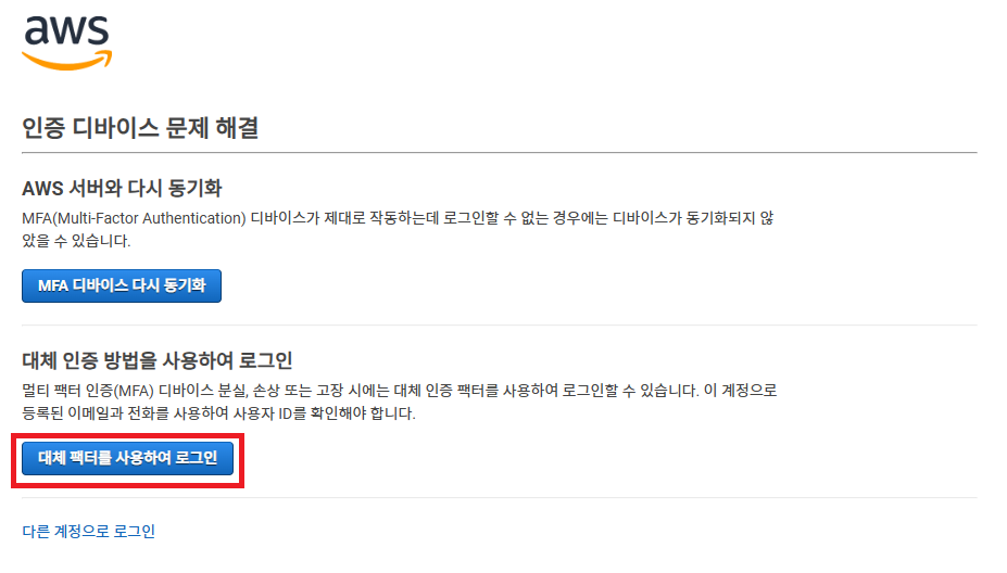 3) 대체 팩터를 사용하여 로그인