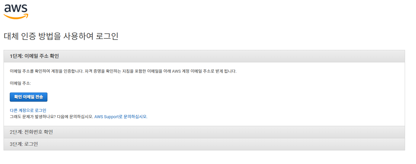 4) 대체 인증 방법을 사용하여 로그인