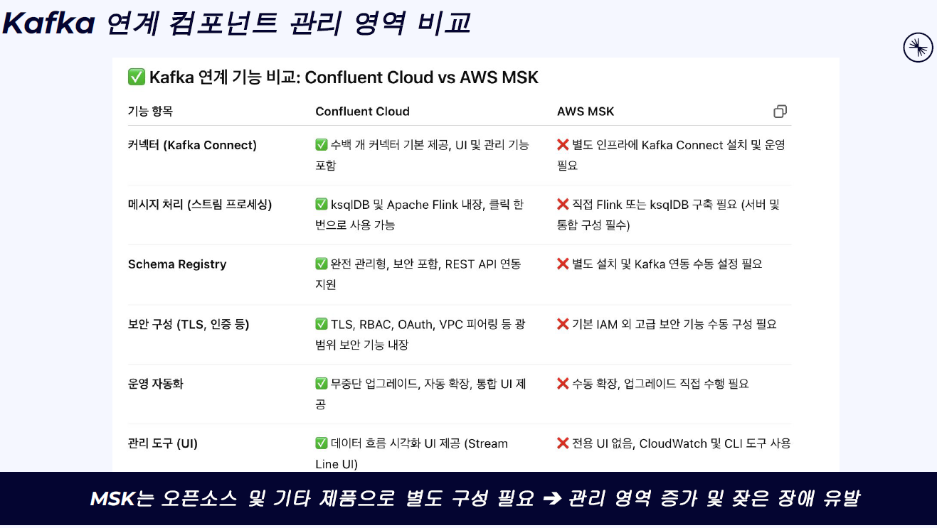 4. Kafka 연계 컴포넌트 관리의 복잡성 (MSK vs Confluent)
