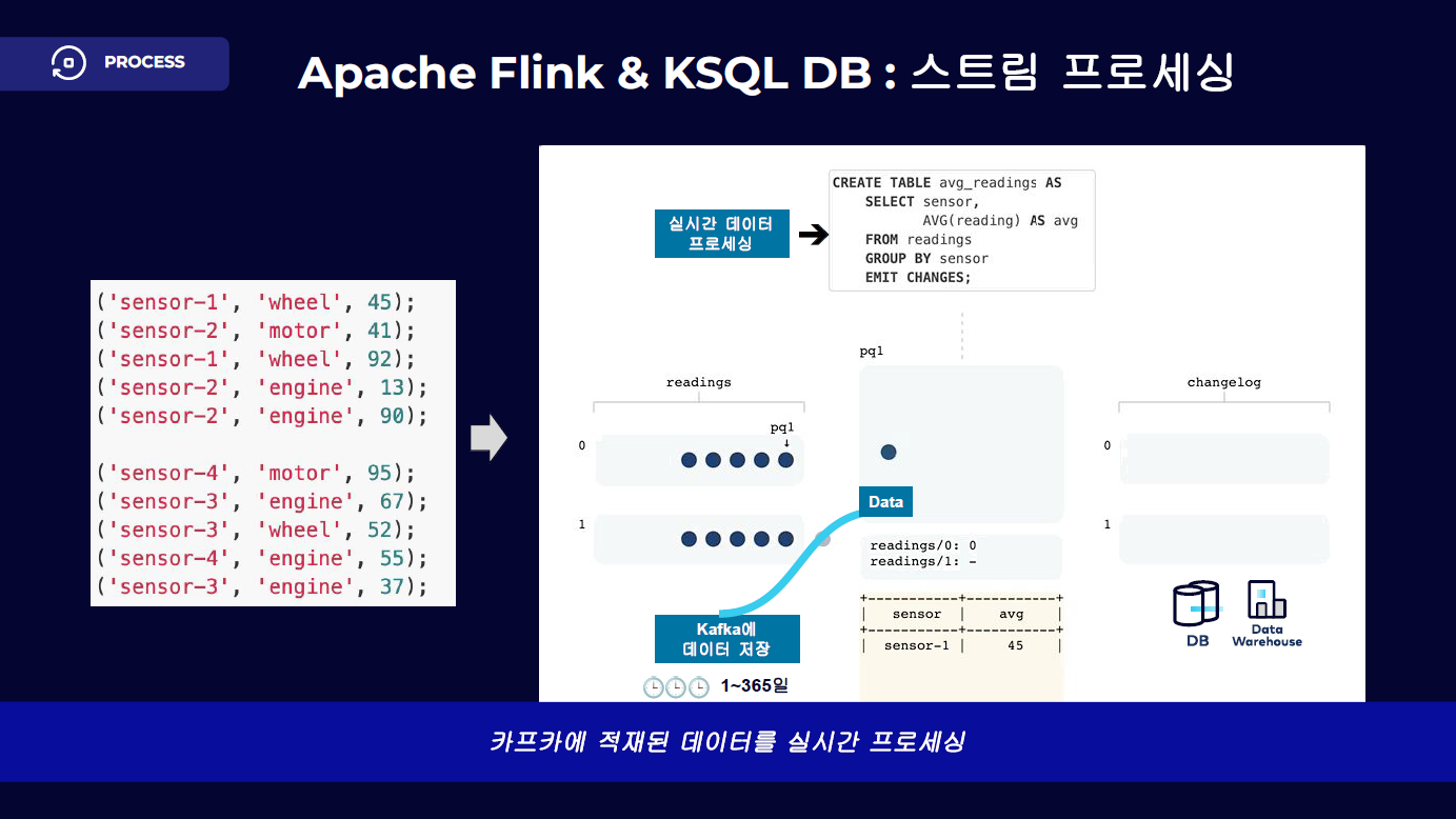 Confluent는 Apache Flink와 ksqlDB를 기반으로 Kafka에 적재된 데이터를 실시간으로 가공·분석할 수 있는 환경을 제공합니다. 복잡한 실시간 조건 처리, 집계, 조인을 통해 비즈니스 이벤트를 즉각적으로 감지하고 대응할 수 있습니다.