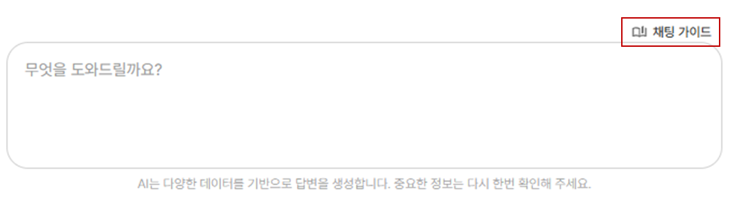 해당 채팅 가이드는 AI 검색 모드 검색창 오른쪽 상단에서도 확인할 수 있습니다.